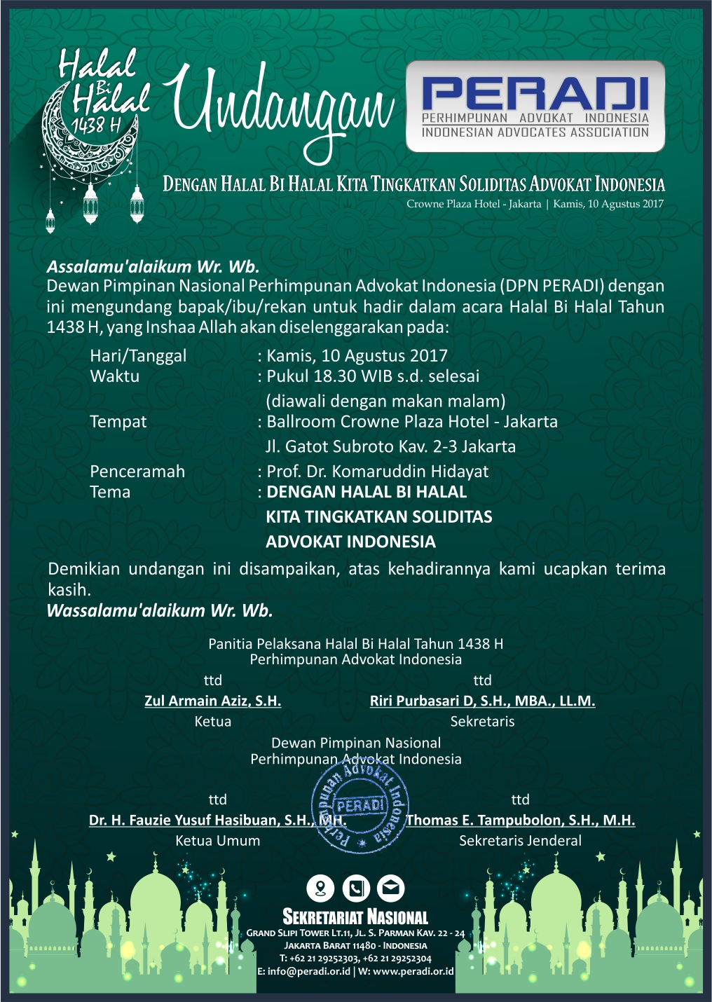Halal Bi Halal 1438H Perhimpunan Advokat Indonesia 'Dengan Halal Bi Halal Kita Tingkatkan Soliditas Advokat Indonesia'