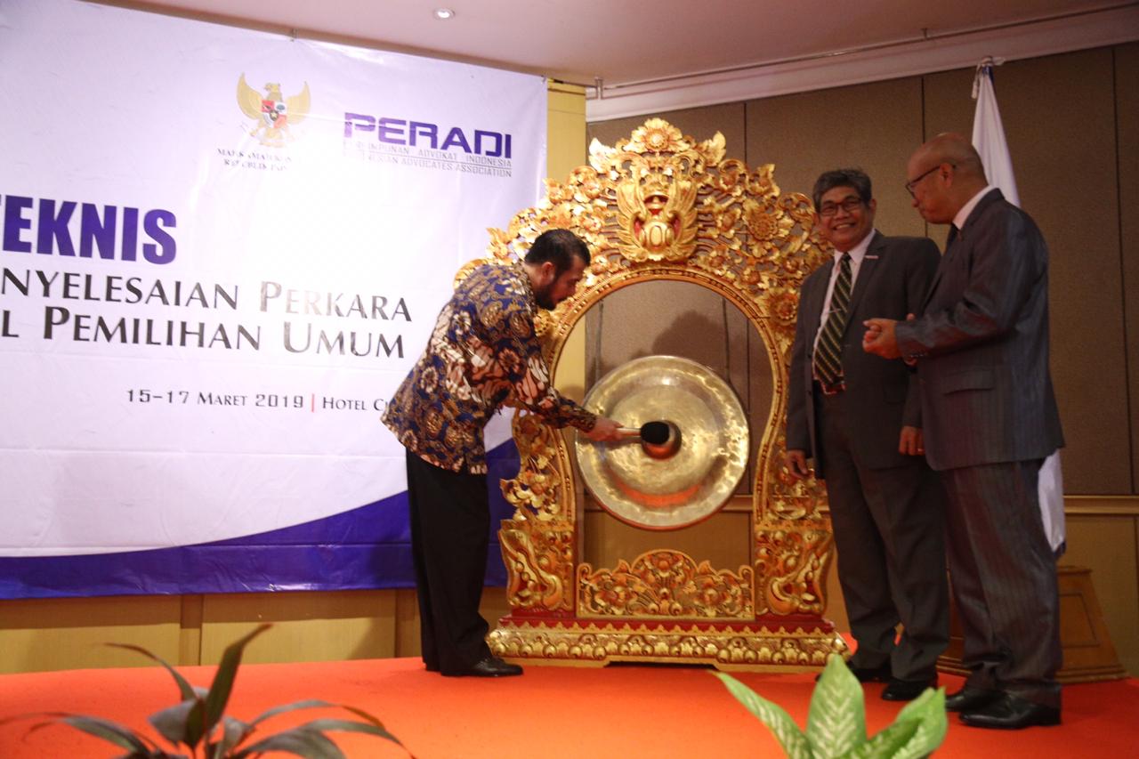 Dalam menghadapi Pilpres dan Pileg 2019 bulan April mendatang, Dewan Pimpinan Nasional Perhimpunan Advokat Indonesia (DPN Peradi) bekerjasama dengan Mahkamah Konstitusi RI mengadakan Bimbingan Teknis (Bimtek) Penyelesaian Perkara Perselisihan Hasil Pemilihan Umum 2019.