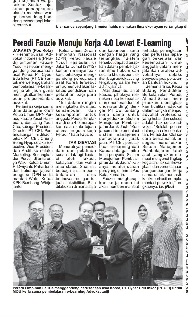 Kerjasama PERADI & CEI: PERADI & CEI Collaboration: Implementasi Sistem Pembelajaran Jarak Jauh bagi Advokat dalam Meningkatkan Kualitas Advokat Tanpa Hambatan Ruang dan Waktu - https://hariandetik.net/2019/12/28/kerjasama-peradi-cei-peradi-cei-collaboration-implementasi-sistem-pembelajaran-jarak-jauh-bagi-advokat-dalam-meningkatkan-kualitas-advokat-tanpa-hambatan-ruang-dan-waktu/