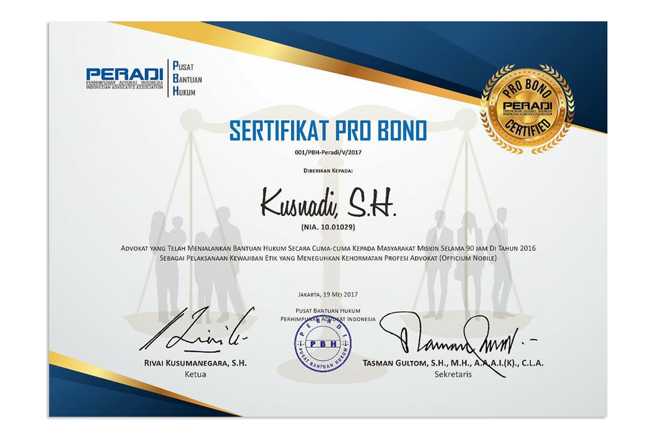 Album Gallery / Album Pusat Bantuan Hukum PERADI Meluncurkan Logo Pro Bono Certified Pada Sertifikat Pro Bono Yang Diberikan Pada Setiap Advokat Yang Telah Melaksanakan Bantuan Hukum